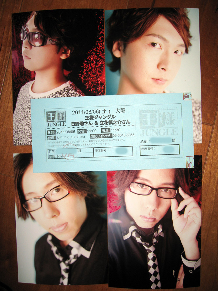 站到聪哥面前我立刻说「昨天的TBS辛苦了……」本来还想拿昨天TBS的neta开聪哥的涮,结果聪哥很惊喜看着我,打断我说「え?昨日いらっしゃいました?ありがとうございます!」原话被打断后我立马有点不知所措了,就结结巴巴的说「嗯,是的…………」然后语塞的盯着聪哥,几秒后忽然醒过来,继续说「次郎好可怜啊!」聪哥立刻爽朗的“哈哈哈”大笑起来了。于是我又晕厥了(喂)此时staff桑似乎有在催我,然后我就边走向立花边对着聪哥说「舞、舞台上的日野桑很帅……」聪哥就朝着这边笑着说了谢谢。