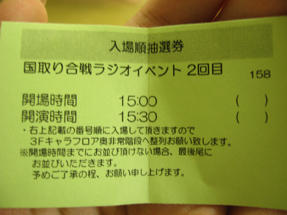 于是,我就还沉浸在聪哥的笑容的时候没任何心里准备的走到立花面前了||||| 上去之前我还想着上次大阪没能好好盯着立花看这次一定要盯着他说话结果我脑袋空白的和立花对视了一秒就立刻低头说不出话了|||| 楞了几秒后,开口说「对不起,一站到立花桑面前我就紧张的说不出话了……」立花就很无奈的笑着说「いえ、いえ。」然后身后的staff桑开始催我了,于是我就低头说了句「すみません」头也不抬就准备落荒而逃(← 立花就追加了一句「またお待ちしておりす!」